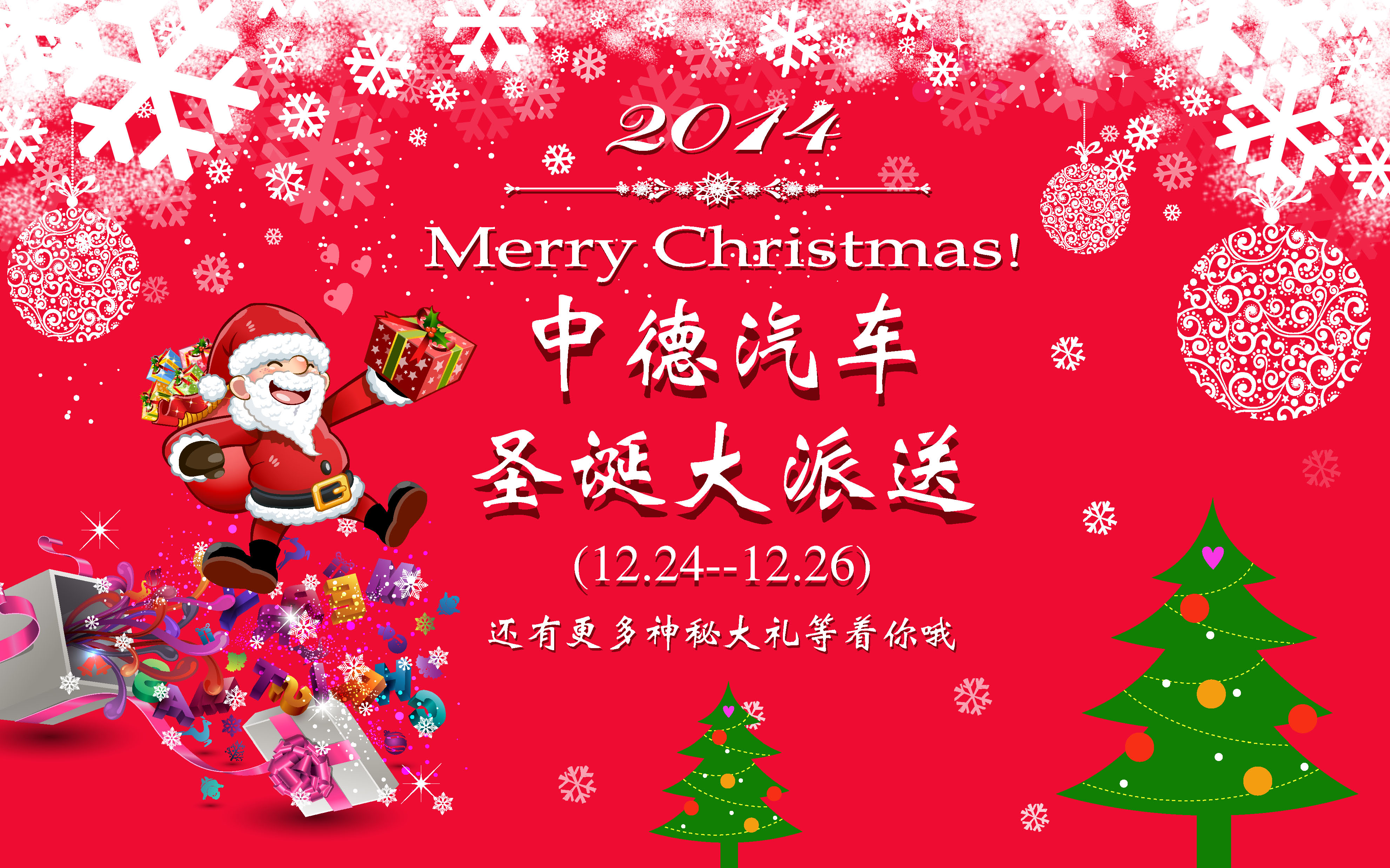“圣诞老人”当天会降临中德汽车,随机与客户进行互动活动,客户有机会获得“福袋”。